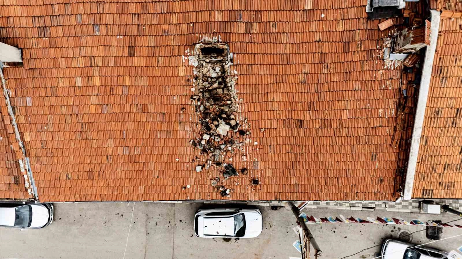 Çürüyen baca otomobilin üzerine yıkıldı