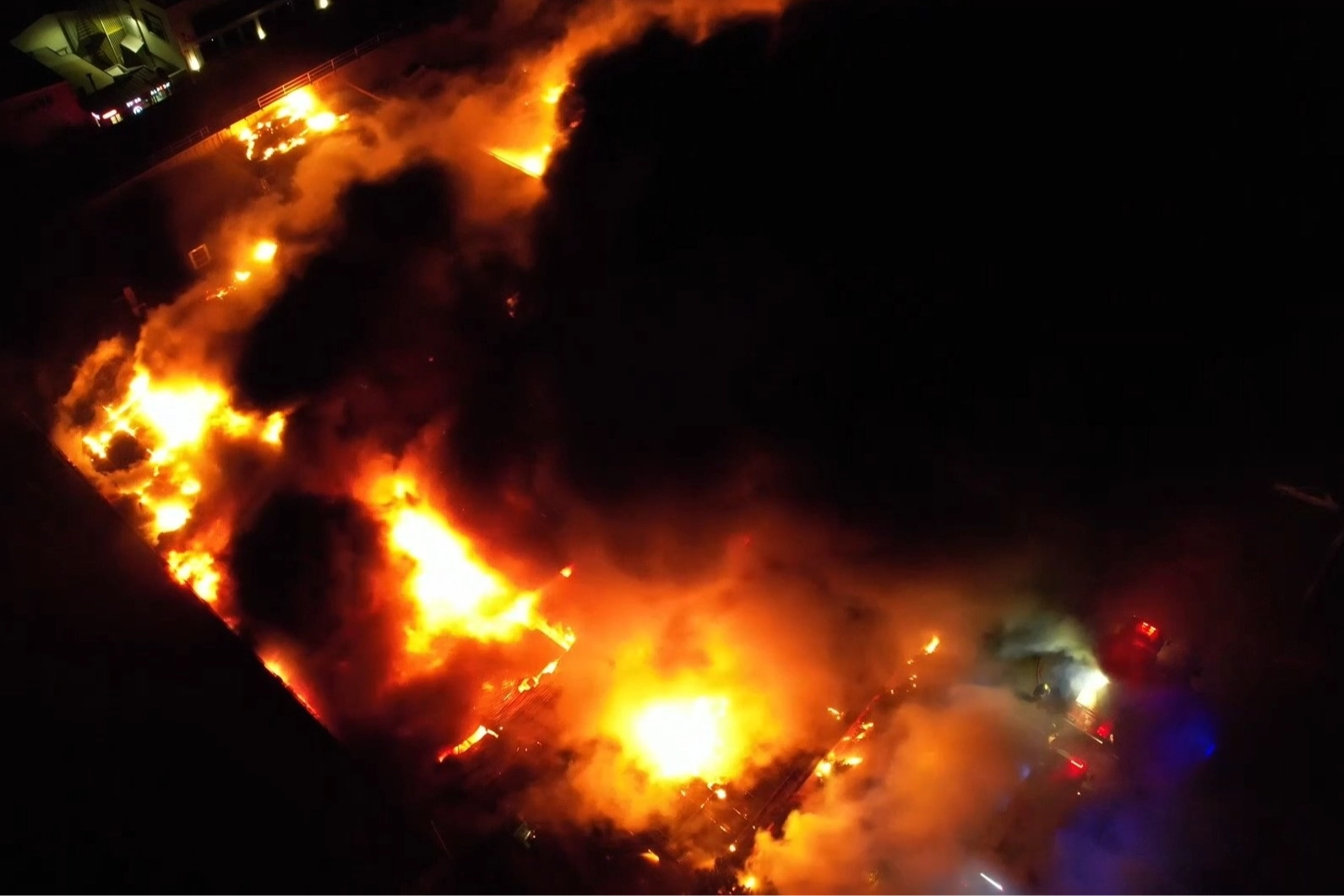 Alevlerin etkisiyle fabrikanın bazı duvarları parçalanarak yıkıldı. Yoğun alevler ve duman nedeniyle sanayi bölgesinde gökyüzü dumanlarla kaplandı.