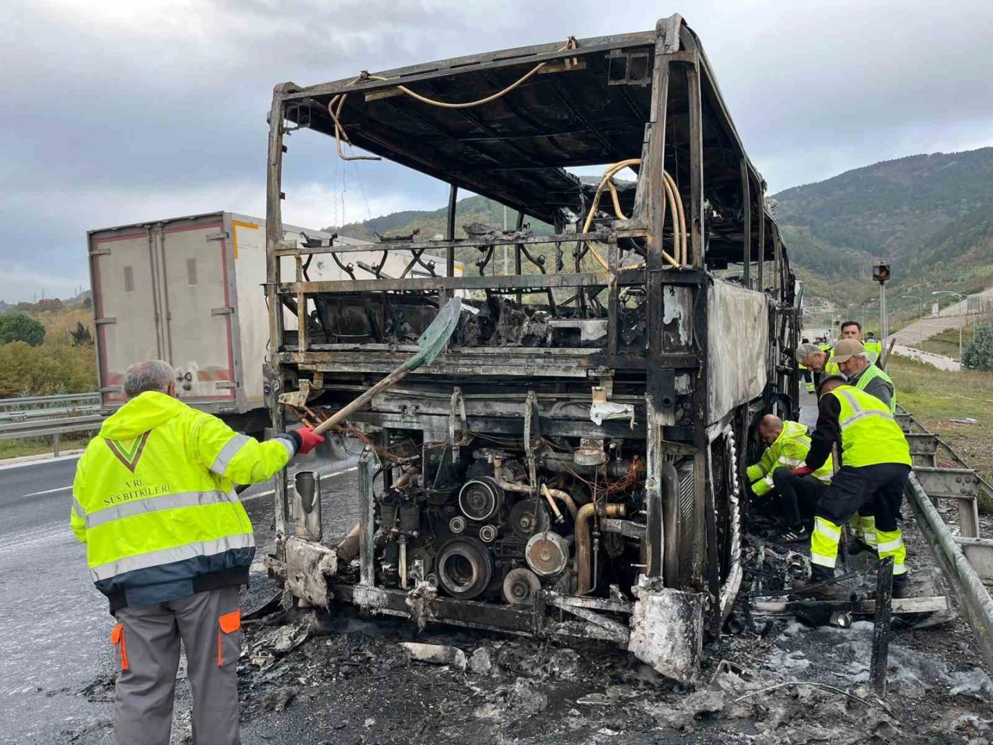 Yanan otobüsteki öğrenci ve öğretmenler olay yerine çağrılan bir başka otobüs ile yollarına devam ederken, yangın nedeniyle otoyolda güvenlik önlemleri alındı. Yanan otobüs çekici ile bulunduğu yerden kaldırıldıktan sonra trafik normale döndü. Olayla ilgili soruşturma başlatıldı.