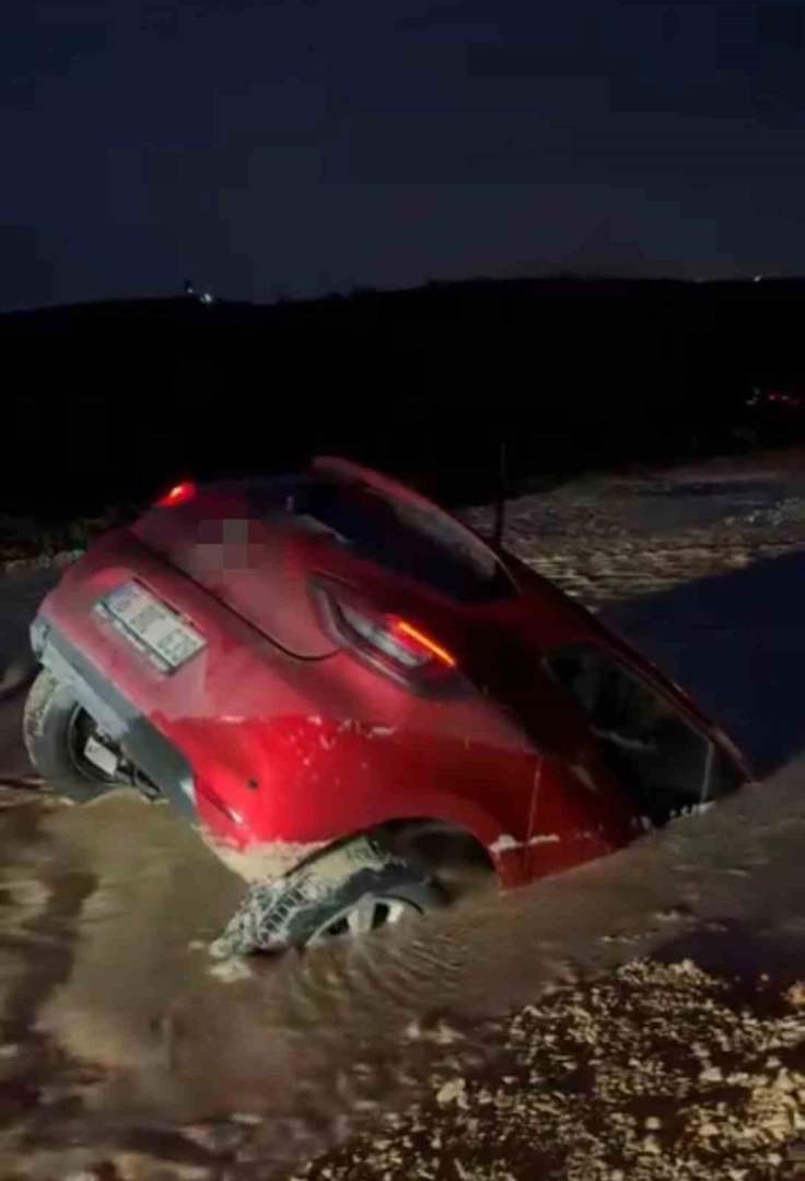 Araç yarıya kadar çamura gömülürken, sürücü otomobilden son anda çıkarak kurtuldu.