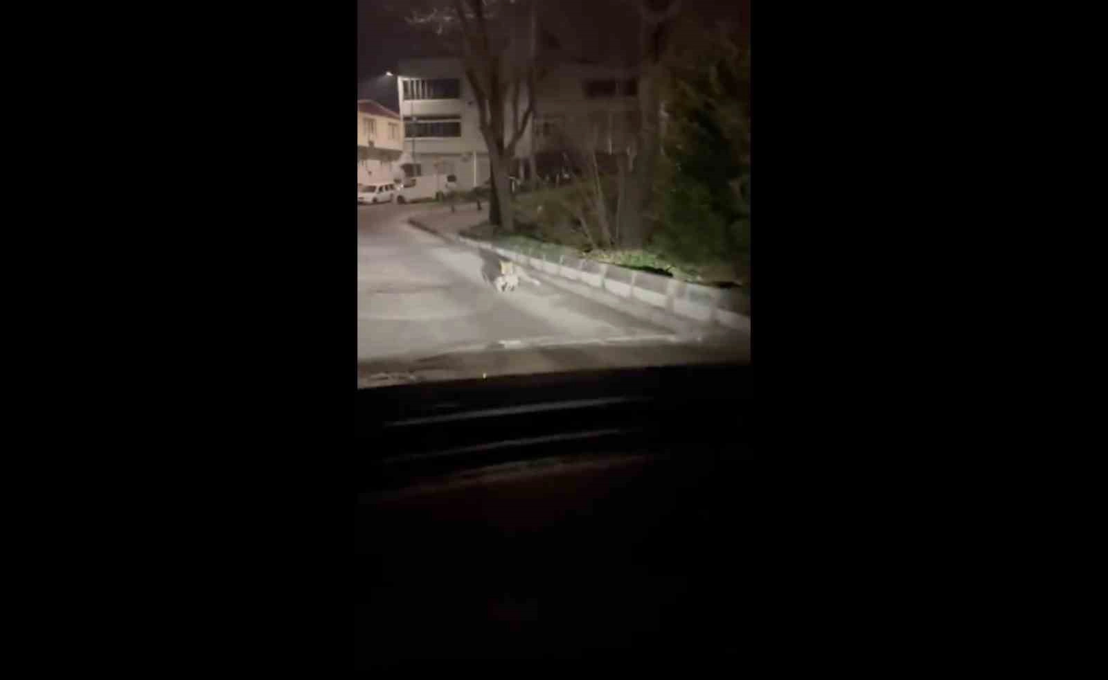 Görüntülerde, tilkinin avladığı kediyi ağzında taşıyarak mahalle arasında hızla uzaklaştığı görülüyor. Olayın gece yarısına yakın saatlerde yaşandığı öğrenilirken, beklenmedik karşılaşma çevrede bulunan vatandaşlarda tedirginliğe neden oldu.