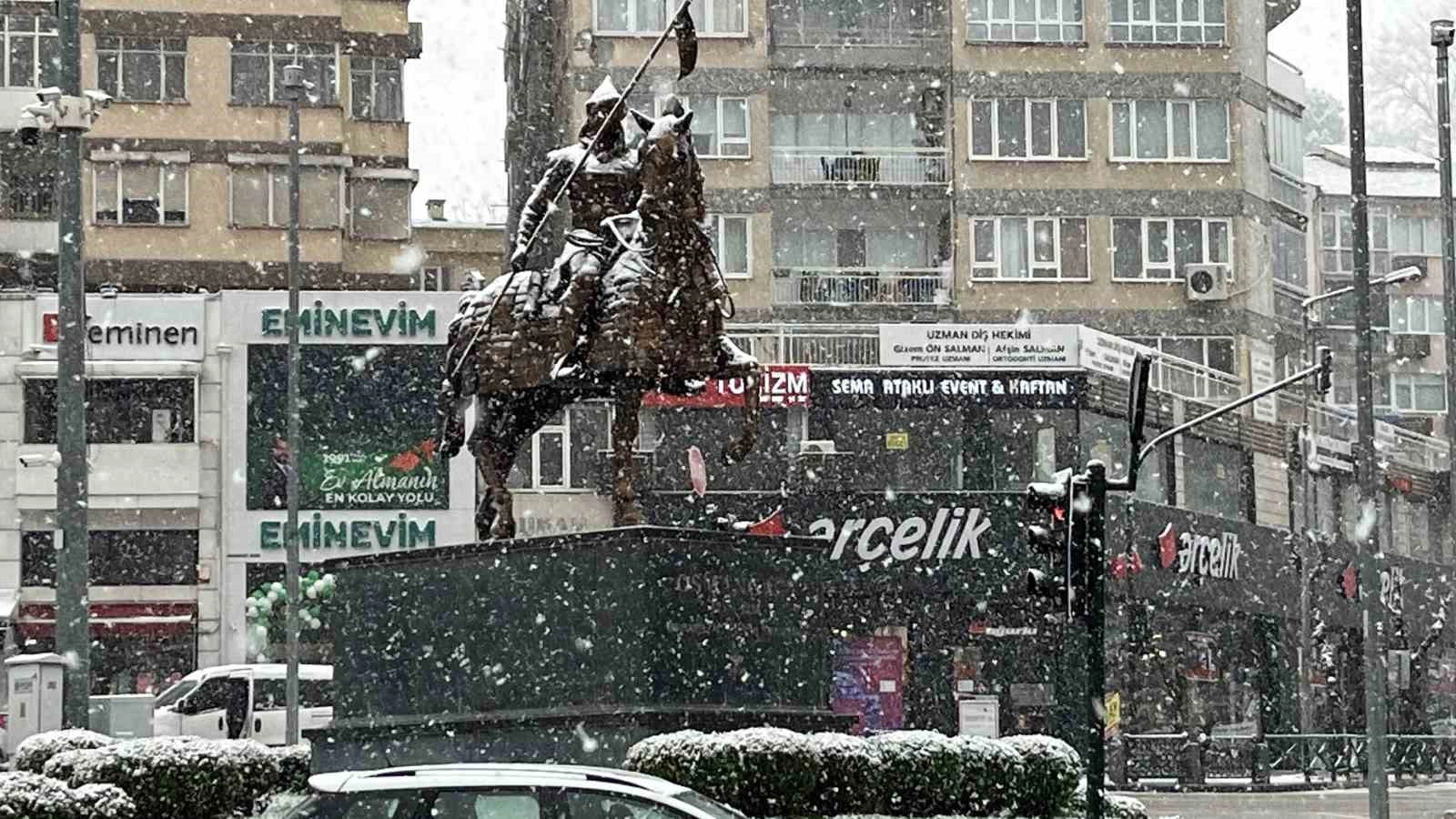 Bursa’da sabah saatlerinde etkili olan yoğun kar yağışı şehre beyaz gelinlik giydirdi