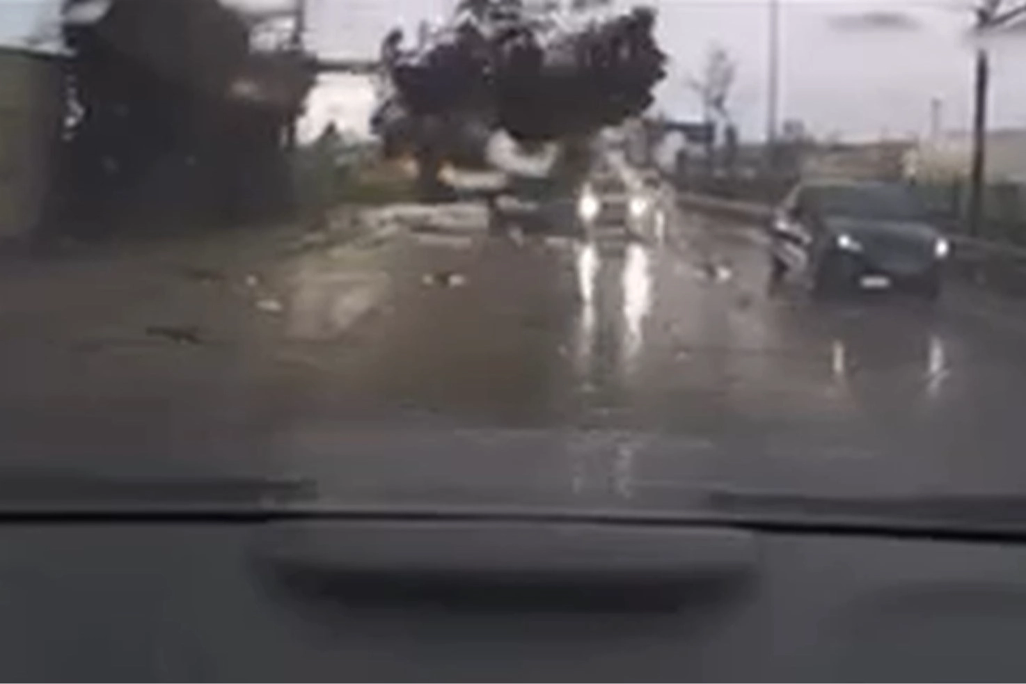Aracın arka kamerasın yansıyan görüntülerde ana yolda kimsenin bulunmadığı bir sırada fırtınanın etkisiyle bir ağaç yola devrildi.