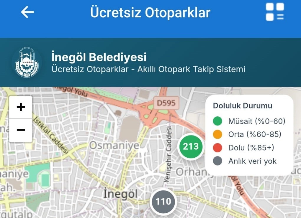 İnegöl Belediyesi Bilgi İşlem Müdürlüğü tarafından yenilenen Senin Belediyen mobil uygulamasında en dikkat çekici özelliklerinden biri ise şehir merkezindeki ücretsiz otoparklara yönelik sunduğu anlık takip sistemi oldu. Bu özellikle birlikte vatandaşlar, İnegöl Belediyesine ait ücretsiz otoparkların doluluk durumunu mobil cihazları üzerinden anlık olarak görüntüleyebiliyor. Özellikle yoğun saatlerde park yeri arama sorununa pratik çözüm sunan sistem, sürücülere zaman kazandırırken şehir içi trafik akışına da olumlu katkı sağlamayı hedefliyor.