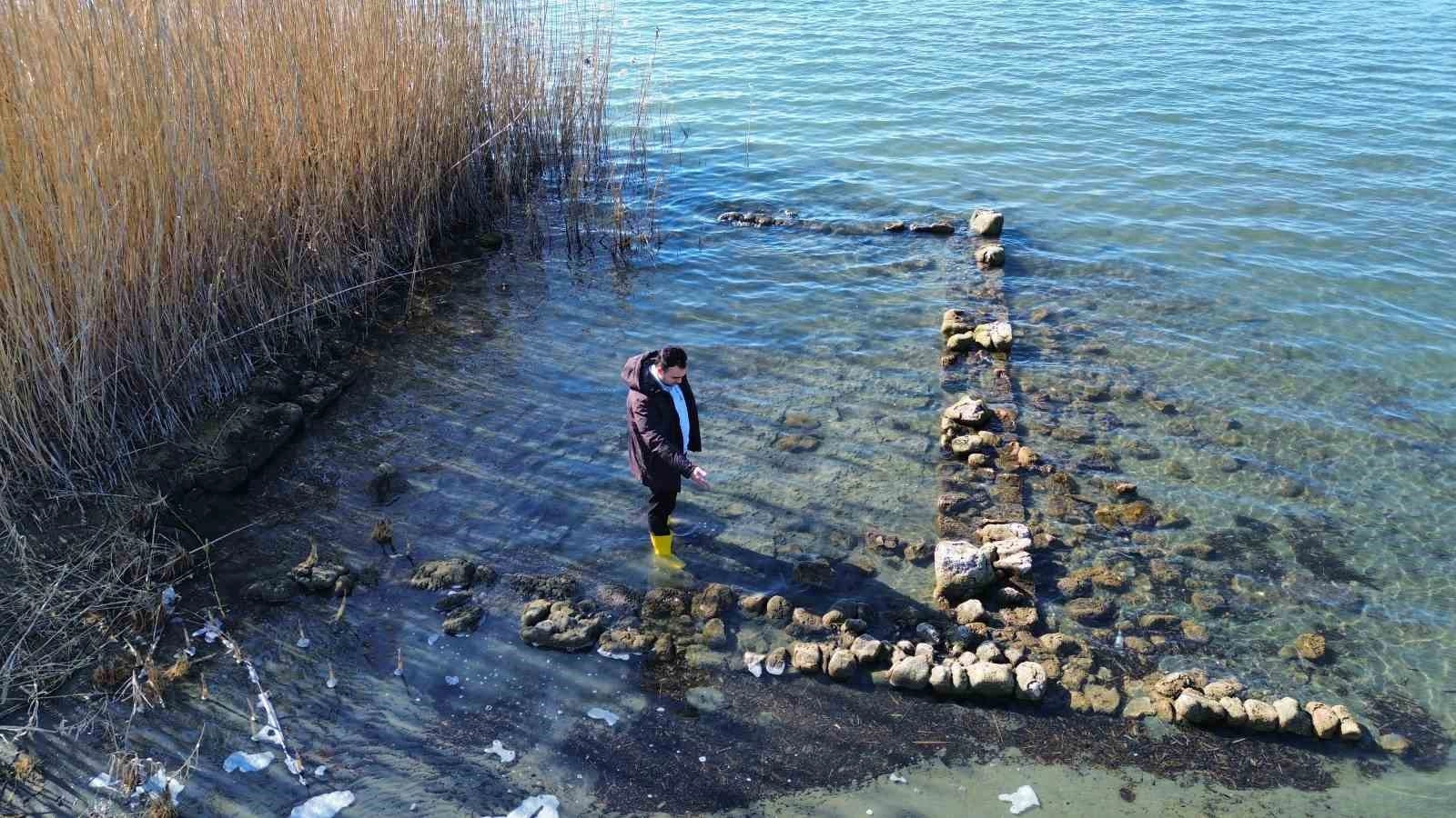 Göl sularının çekilmesiyle tamamen görünür hâle gelen kalıntıların, İznik sahil bandında kumsalın hemen yanında yer aldığı görülürken, yapıyı fark eden ekip heyecan yaşadı.