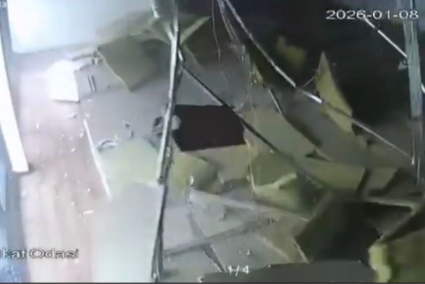 Görüntülerde, vatandaşların tavanın çökmesiyle birlikte hızla kaçtığı ve kıl payı kurtulduğu görüldü.