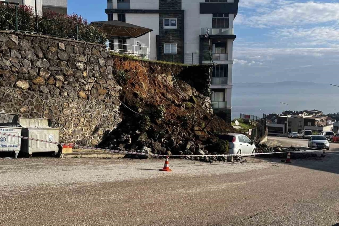 Bursa’nın Mudanya ilçesi Halitpaşa Mahallesi’nde saat 01.00 sıralarında, yağışın etkisiyle istinat duvarı çöktü.