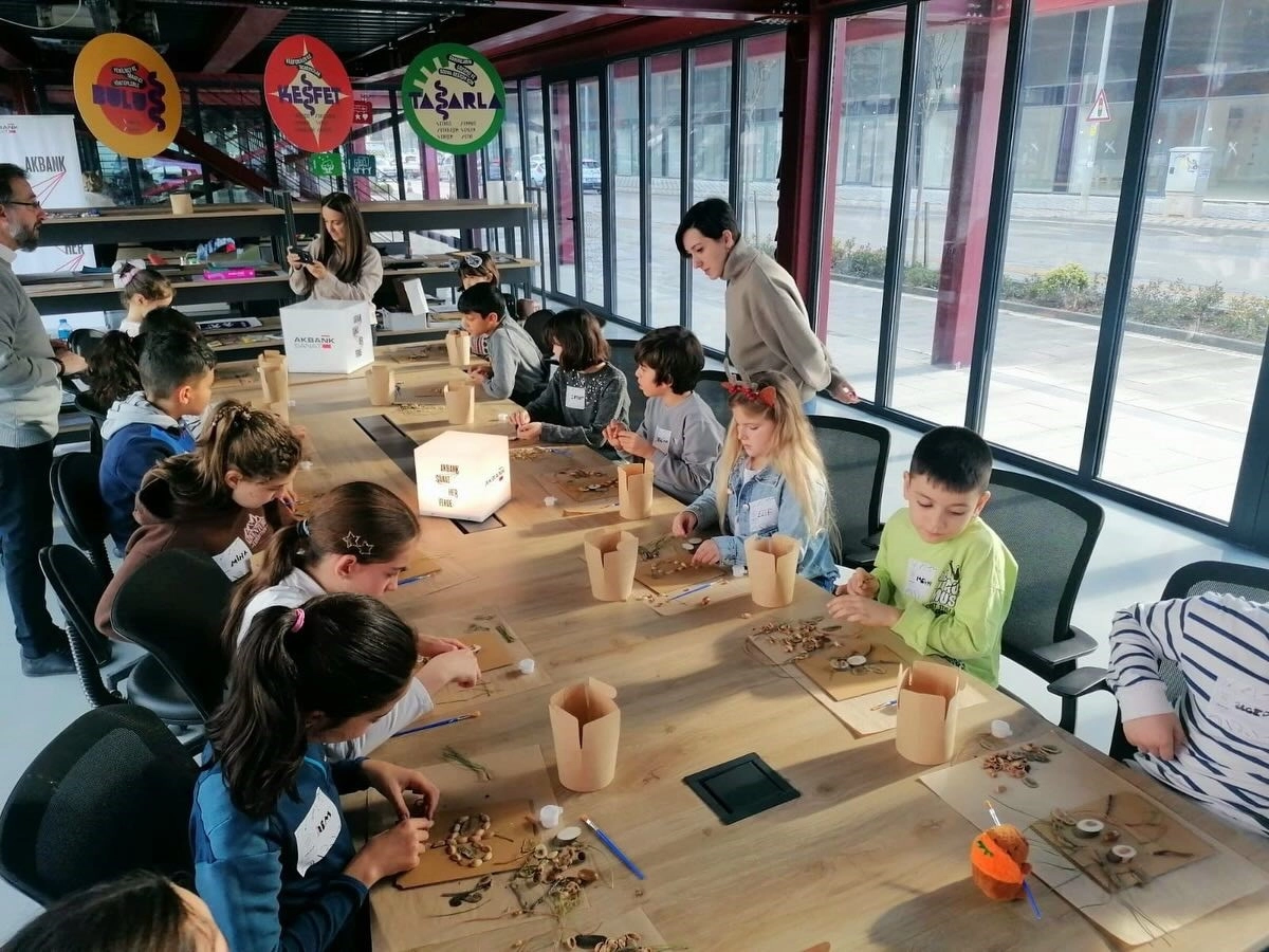 Günün ikinci etkinliği olan "Dönüşüm" atölyesinde ise odak noktası edebiyat ve doğa gözlemi oldu. Franz Kafka’nın Dönüşüm romanından esinlenilerek hazırlanan içerikte çocuklar, böceklerin ve küçük canlıların dünyasını mercek altına aldı. Makro fotoğraflar üzerinden canlıların renk, desen ve biçimlerini detaylıca inceleyen katılımcılar, bu gözlemlerden yola çıkarak kendi hayali böceklerini tasarladı.