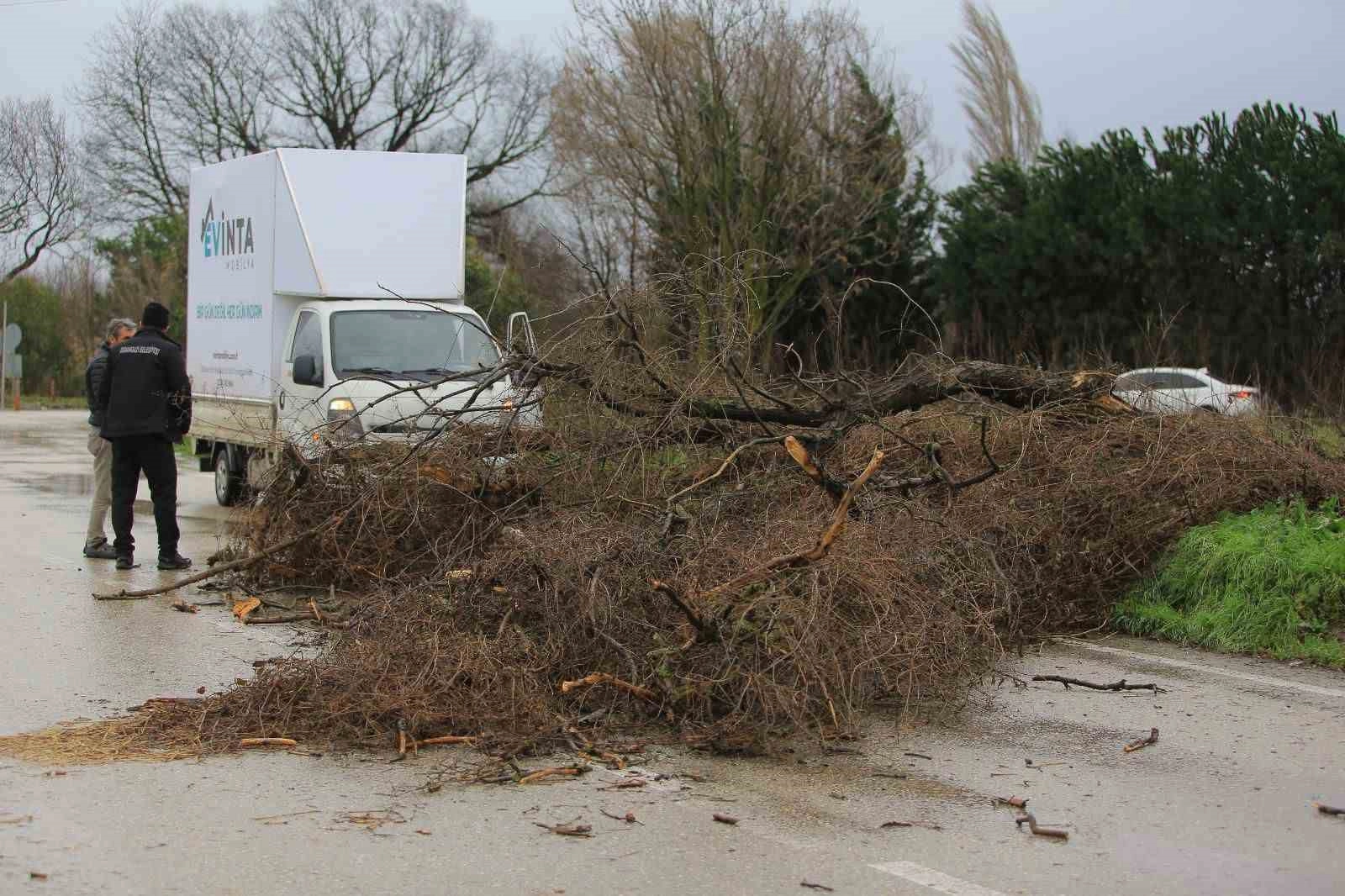 Bursa’da sabah saatleriyle birlikte etkisini artıran lodos ve sağanak yağış, kent genelinde günlük yaşamı olumsuz yönde etkiledi. Saatte yaklaşık 80 kilometre hıza ulaşan rüzgar, özellikle Osmangazi ilçesinde bulunan bazı bölgelerde ağaç devrilmeleri ile dal kırılmalarını beraberinde getirdi. Olumsuz hava şartlarının ardından Osmangazi Belediyesi Park ve Bahçeler Müdürlüğü ekipleri hızla sahaya indi. Lodosun etkili olduğu ilk andan itibaren gelen ihbarları değerlendiren ekipler; Nilüferköy, Dikkaldırım ile Demirtaş Sakarya mahallelerinde hızlı ve koordineli bir çalışma yürüterek muhtemel tehlikelerin önüne geçti. Gerçekleştirilen müdahaleler sayesinde yaya ve araç trafiğinde oluşabilecek aksamalar giderilirken, vatandaşlara güvenli bir ortam tesis edildi.