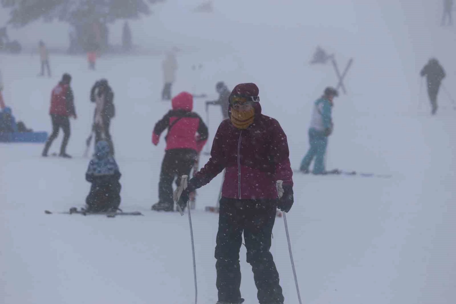 Tatilciler soğuk hava ve sise rağmen kayak ve snowboard sevdasınadn vazgeçmedi.
