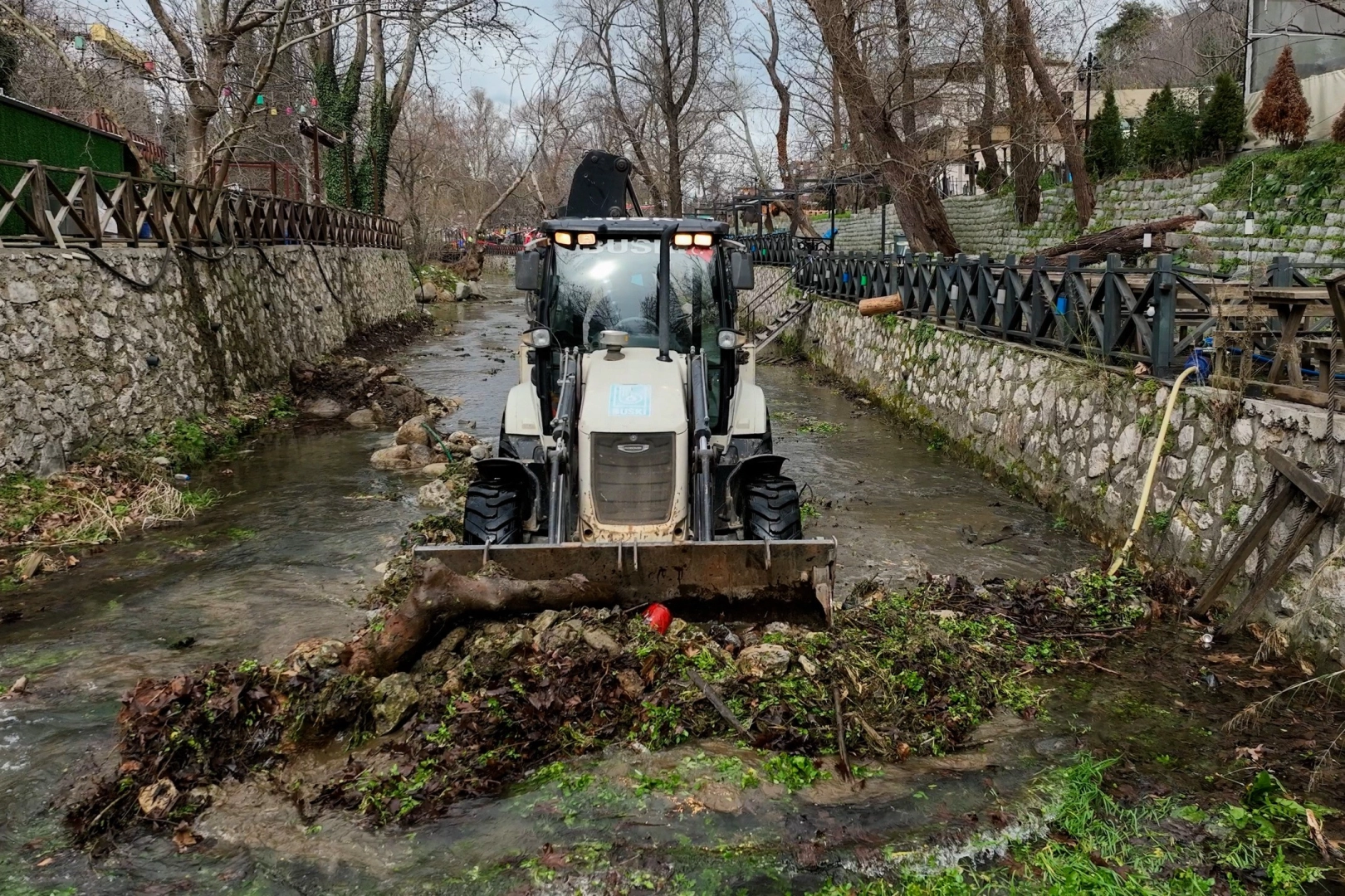 Çalışmalarda toplam 11 araç ve 36 personel görev alırken, yaklaşık 1 kilometrelik dere yatağında biriken atıklar iş makineleriyle toplandı.