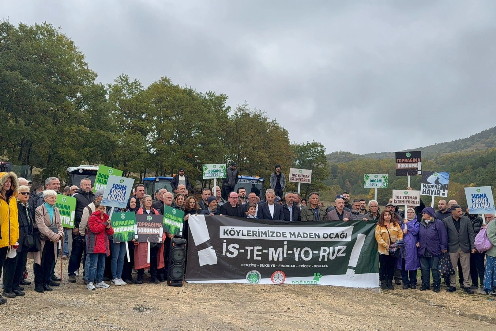 Bursa Çimento tarafından 250 dönümlük orman ve tarım alanında kurulması planlanan maden tesisine karşı bir araya gelen doğa severlerin eylemine MHP Gemlik İlçe Başkanı Emrah Keskin, Saadet Partisi Gemlik İlçe Başkanı Cihangir Dinç, iş adamı Erten Kayan, STK temsilcileri, Şükrüye, Fevziye, Dışkaya, Fındıcak ve Ericek mahallesinden muhtar ve vatandaşlar katıldı.