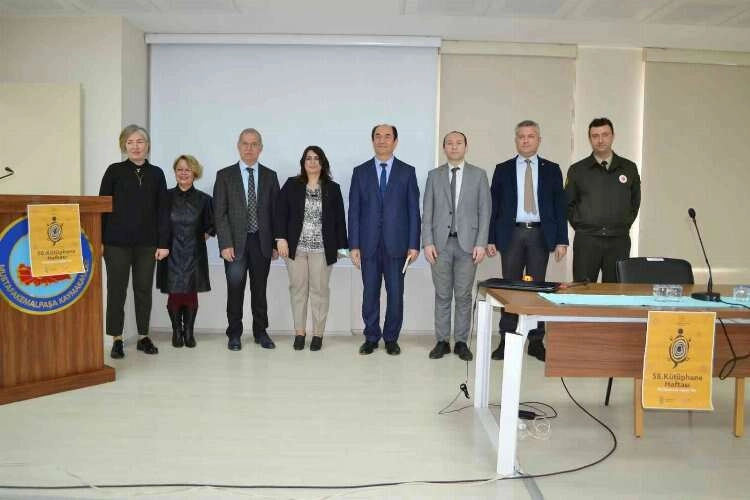 Kütüphanelerin başta öğrenciler olmak üzere tüm okuyucular tarafından aktif olarak kullanılan mekânlar haline getirilmesini sağlamak ve kütüphaneleri nicelik ve nitelik olarak zenginleştirmek amacıyla her yıl 28 Mart-3 Nisan tarihleri arasında kutlanan Kütüphane Haftası için Mustafakemalpaşa’da özel bir program düzenlendi. ‘Kütüphanede Hayat Var’ temasıyla kutlanan 58. Kütüphane Haftası’nda, Kaymakamlığın ev sahipliğinde 3 gün süren etkinlikler, açılış töreni ile başladı. 58. Kütüphane Haftası dolayısıyla Kaymakamlık Konferans Salonunda düzenlenen programa; Kaymakam Ahmet Altıntaş, Cumhuriyet Başsavcısı Nurettin Güner, Askerlik Şubesi Başkanı Pers. Asb. Üçvş. İsmet Çağrı Ceviz, Milli Eğitim Müdürü Mustafa Efe, Halk Kütüphanesi Müdürü Mümine Aydın, Emniyet Müdürü Rıza Dinç, Müftü AhmetBüyükgül, TSO Başkanı Tekin Uzkınay, siyasi parti ve STK temsilcileri, öğretmenler ve öğrenciler katıldı. Saygı duruşu ve İstiklal Marşı ile başlayan törenin açılış konuşmasını yapan İsmail Hakkı Şenpamukçu Halk Kütüphanesi Müdürü Mümine Aydın, kütüphanenin yazının bulunması ve kayıtlı bilginin oluşmaya başlamasıyla birlikte tarihsel ve toplumsal bir gereksinme sonucu ortaya çıkan, temel işlevi üretilen bilgiyi kayıt altına alıp düzenleyerek erişilebilir duruma getiren bir kurum olduğunu söyledi. 30 binden fazla kitap okuyucuları bekliyor İsmail Hakkı Şenpamukçu Halk Kütüphanesi’nin 1961 yılında ‘Çocuk Kütüphanesi’ olarak kurulduğunu hatırlatan Mümine Aydın, 1978 yılında ‘Halk Kütüphanesi’ne dönüştürülen kurumun 31 bin 336 adet kitapla faaliyetini sürdürdüğünü kaydetti. Halk Kütüphanesi hakkında bilgiler veren Aydın şöyle konuştu; ”Kütüphanemizin zemin katında çocuk bölümü ve internet salonu bulunmaktadır. Çocuk bölümümüz; okul öncesi ve ilköğretim çağındaki çocuklarımızın kullandığı bölümdür. Çocuklar için 4 bin 916, gençler için 623 adet ve okul öncesi çocuklar için ise 97 adet kitabımız mevcuttur. İnternet bölümümüzde 15 adet bilgisayarla kullanıcılarımıza ücretsiz olarak hizmet vermekteyiz. Kablosuz internet ağıyla kullanıcılarımız kendi bilgisayar ve cep telefonları ile istedikleri yerden internete bağlanabilmektedirler. Süreli yayın bölümümüzde Bakanlıkça abone olunan 68 çeşit dergi ve Mustafakemalpaşa’ da basılan yerel gazeteler kullanıcıların hizmetine sunulmuştur. Yetişkin bölümünde ise 25 bin 700 adet kitap mevcuttur. Kütüphanemize üye 5 bin 236 kişi vardır.” Programda daha sonra Kaymakam Ahmet Altıntaş’ın hazırladığı videolardan oluşan ‘Okumanın Gücü’ konulu sunumun gösterimi gerçekleştirildi. Başarıyı artırma ve kitap okuma arasındaki ilişkinin ele alındığı sunumda; okumanın başta eğitim olmak üzere yaşamın her alanına kattığı değerlere dikkat çekildi. Kitap kurtlarına ödül İlk günkü etkinlikler, kütüphaneden en çok faydalanan okuyuculara ödüllerin verilmesiyle tamamlandı. İki kategoride verilen okuyucu ödüllerinde; bir yılda 90 kitap okuyan 14 Eylül İlkokulu 1/A sınıfı öğrencisi Minel Ter birinci, 67 kitapla Sınav Koleji’nden Yusuf Efe Tek ikinci, 62 kitapla da Cahit Zarifoğlu İlkokulu’ndan Şifa Bilge Karaca üçüncü oldu. Yetişkinler kategorisinde ise 92 kitap okuyan ev hanımı Şengül Karaavcı birincilik, 51 kitapla Selahattin Özdemir ikincilik, 48 kitapla da yine ev hanımı Behiye Altuğ üçüncülük ödülüne layık görüldü. Kitap kurtlarına ödülleri Kaymakam Ahmet Altıntaş ve Cumhuriyet Başsavcısı Nurettin Güner tarafından takdim edildi. 58. Kütüphane Haftası kutlamaları çerçevesinde Adnan Menderes Meydanı’nda okuma etkinliği ve çocuklar için animasyon film gösterimi sunulacak.