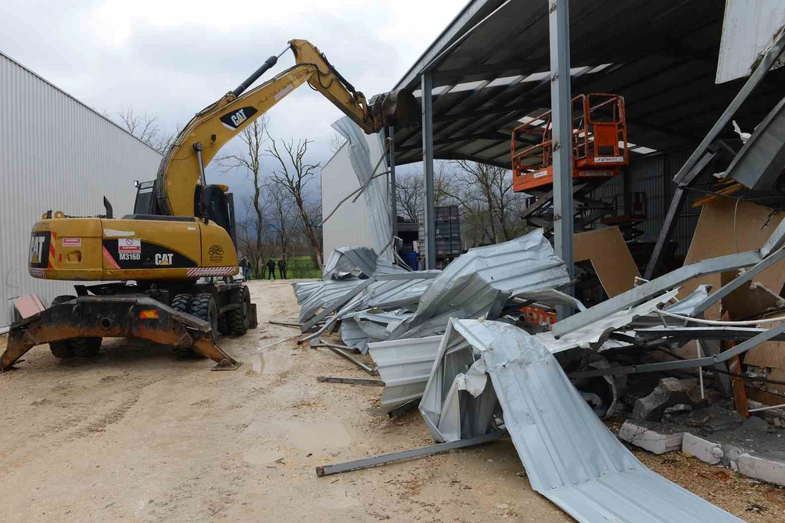 Yıkım çalışmaları, binaların içinde bulunan malzemelere zarar verilmeden güvenli bir şekilde tamamlandı.