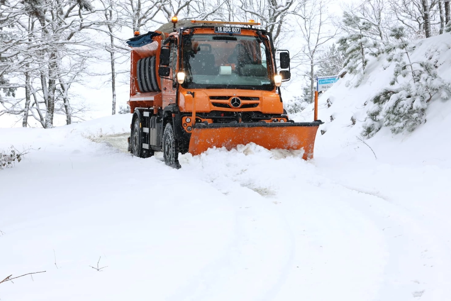 Kar yağışının yüksek kesimlerde etkisini göstermesiyle birlikte Osmangazi Belediyesi Fen İşleri Müdürlüğü ekipleri karla kapanan yolları açmak için harekete geçti.