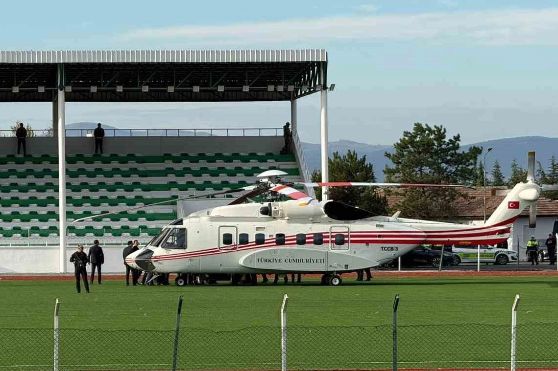 Papa’yı taşıyan helikopter ilçe stadyumuna indi.