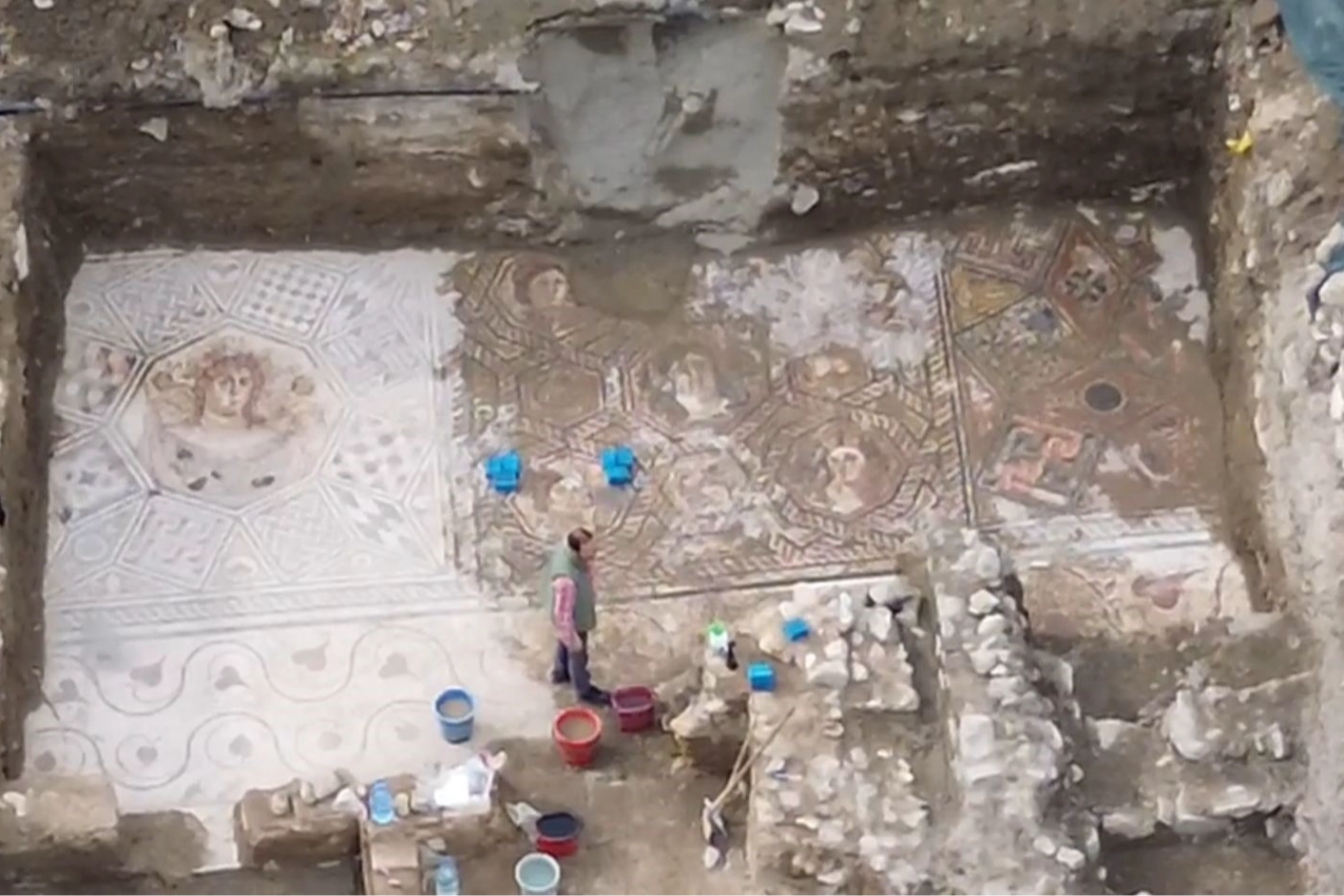 Yapılan kazılar sonucunda, tam 400 metrekarelik dev bir taban mozaiği ortaya çıkarıldı.