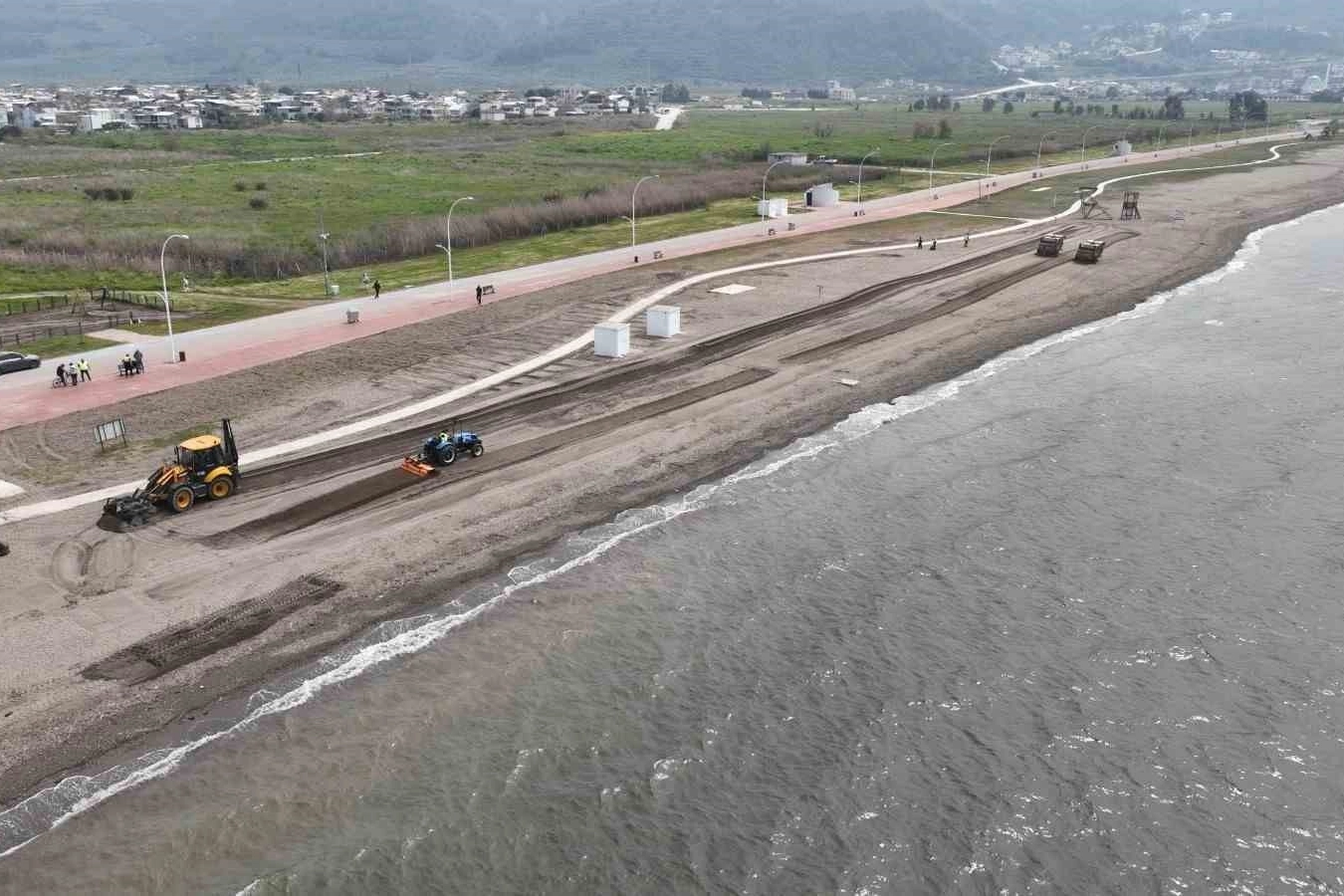 Kış aylarında oluşan atıklar büyük bir titizlikle temizlenirken, kum serme ve tesviye işlemleri yapıldı. Yüzme sezonu boyunca plajlarda oluşan mevsimsel kirlilikler de ekipler tarafından düzenli olarak temizlenecek.