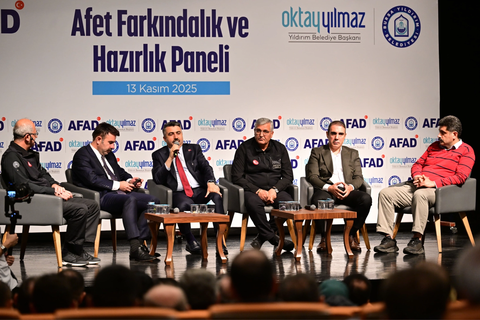 Yıldırım’ı, afetlere karşı dirençli ve güvenli hale getirmek için; kentsel dönüşümden, farkındalık eğitimlerine kadar geniş bir alanda çalışmalarını sürdüren Yıldırım Belediyesi, AFAD iş birliğiyle, toplumda afet bilincini artırmak, yerel ölçekte yürütülen afet yönetimi çalışmalarını paylaşmak ve kurumlar arası iş birliğini güçlendirmek amacıyla, Barış Manço Kültür Merkezi’nde düzenlenen panele; Yıldırım Belediye Başkanı Oktay Yılmaz’ın yanı sıra; Vali Yardımcısı Salih Altun, Yıldırım Kaymakamı Metin Esen, AFAD Marmara Afet Risklerini Azaltma Daire Başkanı Gökhan Yılmaz, AFAD İl Müdürü Mehmet Buldan, Bursa Teknik Üniversitesi Öğretim Üyesi Prof. Dr. Eyüphan Avcı, Uludağ Üniversitesi Öğretim Üyesi Doç. Dr. Fatih Gürses, Orhangazi Belediye Başkanı Bekir Aydın, AK Parti Yıldırım İlçe Başkanı İrfan Akkaya, akademisyenler, muhtarlar, arama kurtarma ekiplerinin temsilcileri, STK’lar, AFAD gönüllüleri ve vatandaşlar katıldı.