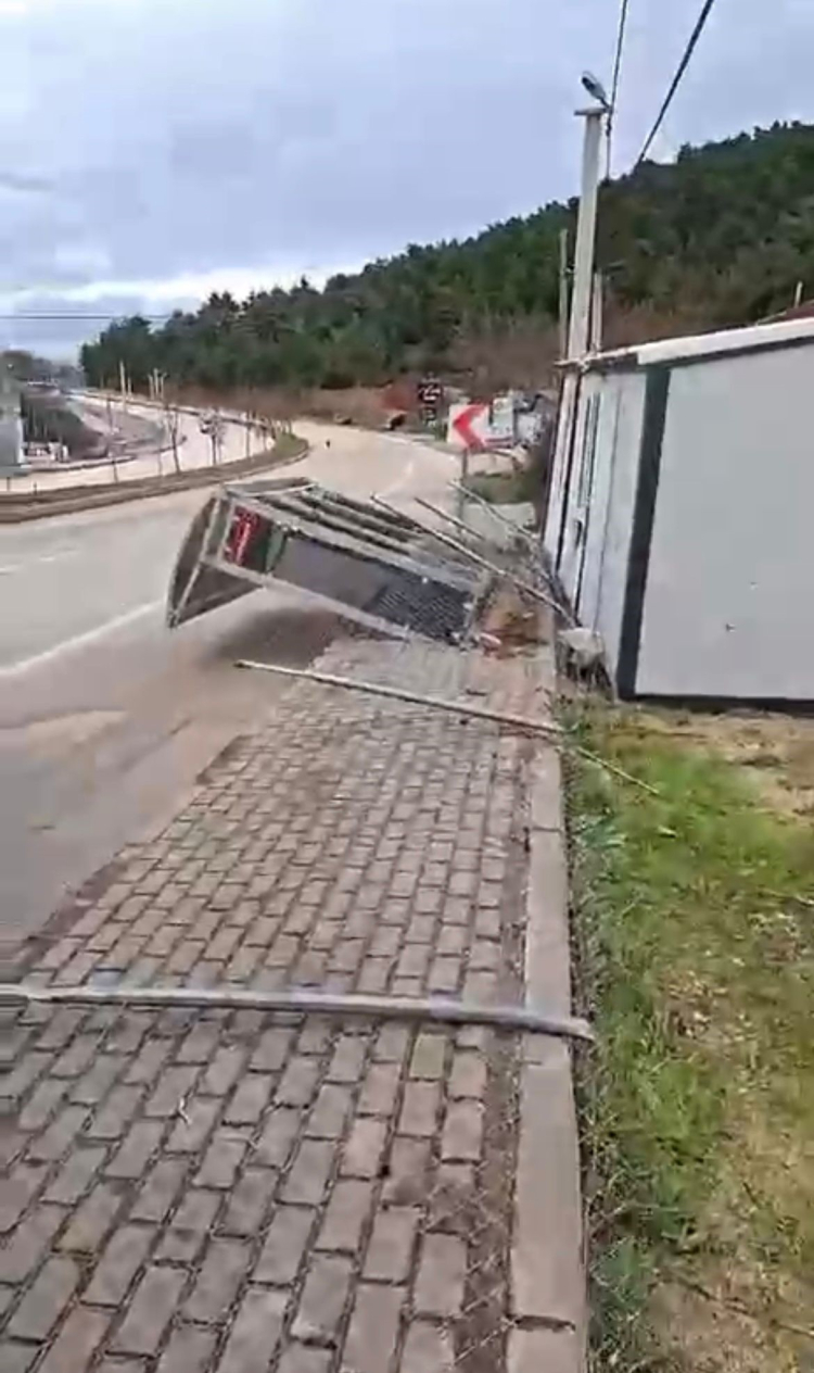 Nilüfer ilçesi Orhaneli yolunda da bir konteyner seyir haline geçti. Fırtına sebebiyle otobüs durağı devrildi.