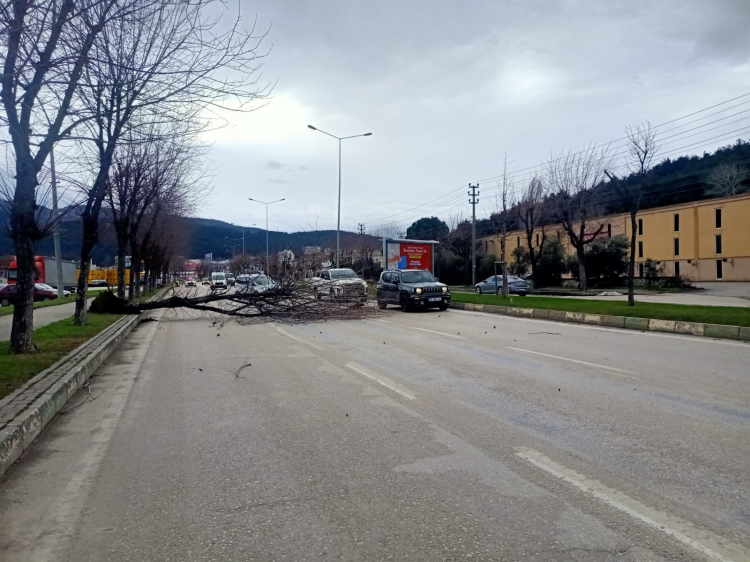 Öte yandan, Orhaneli Yolu üzerinde de yola devrilen ağaç nedeniyle trafik polisleri yolu tek şeride indirdi.