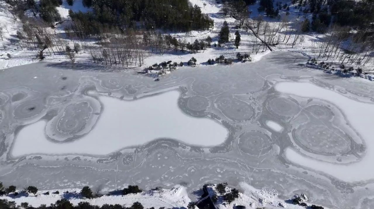 Donmuş gölde çökertme oynadı, buzu kesip suya girdi