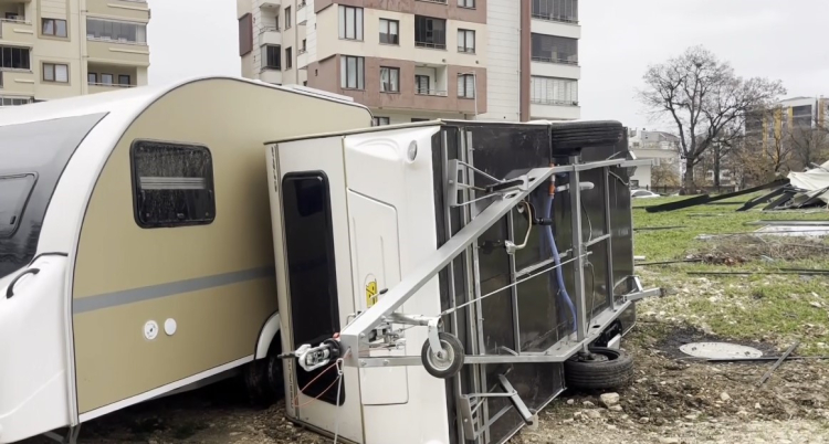 Fırtına çatıları uçurdu, karavanları devirdi