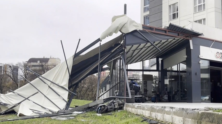 Osmangazi'de 3 katlı bir binanın çatısı sokağa düştü. Nilüfer'deki bir galeri önündeki karavan ve motorlar da devrilip zarar gördü.
