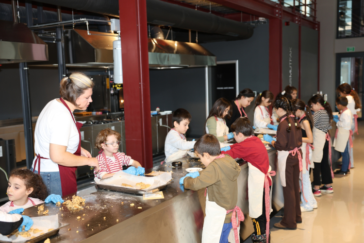 Mutfak Atölyesi’nde küçük şefler önlüklerini giyip çikolatalı kurabiye yaptılar.