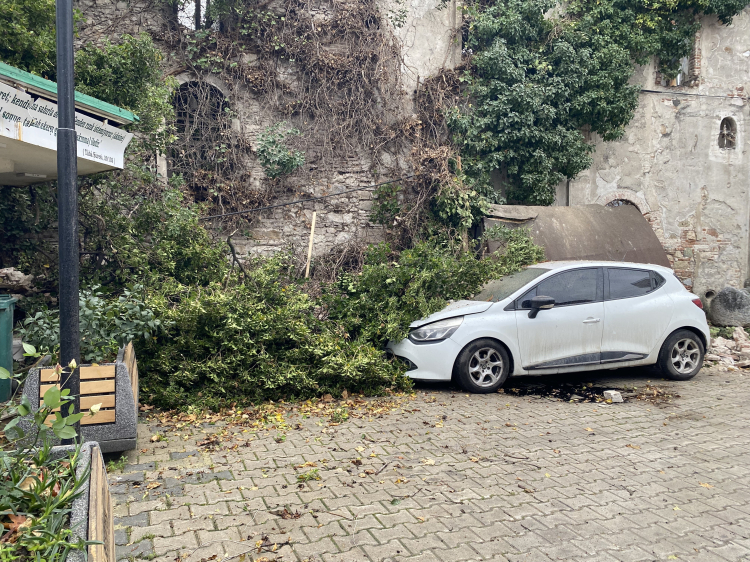 Aydınpınar Mahallesi’nde sabah saatlerinde etkisini artıran şiddetli fırtına, tarihi kilise yapısının bir bölümünün çökmesine neden oldu.