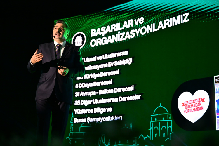Yıldırım’ın tüm kimliklerinin yanında bir de spor kenti kimliği olduğunu belirten Başkan Oktay Yılmaz; “Yıldırım’da 7’den 77’ye herkesin spor imkanına sahip olmasını istiyoruz ve bu doğrultuda çalışıyoruz. Sadece 2025 yılında, 13 tesis 20 farklı branşta 86 bin 880 vatandaşımıza spor hizmeti verdik. Yaz spor okullarında 62 binden fazla çocuğumuza spor eğitim hizmeti sağladık. Bugün Yıldırım’daki spor tesislerimiz tüm Bursa’ya hizmet vermektedir. Spora verdiğimiz destek ve yatırımlarımızın meyvelerini de alıyoruz. Bugüne kadar 129 ulusal ve uluslararası organizasyona ev sahipliği yaptık. Sporcularımız 186 Türkiye derecesi, 5 dünya derecesi, 35 Avrupa- Balkan derecesi- 35 farklı uluslararası derece ve yüzlerce bölge ve Bursa derecesi elde etti” dedi.