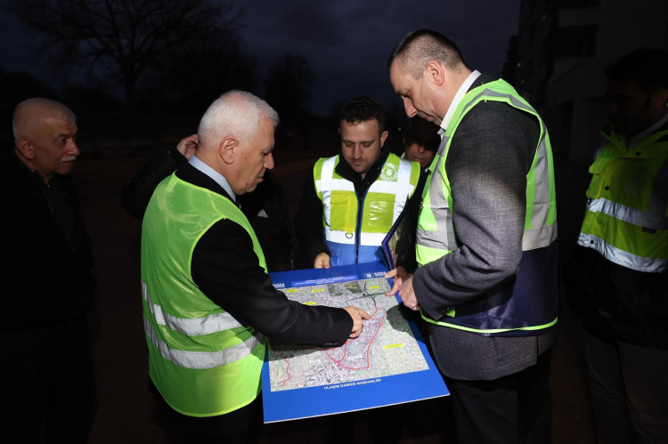 Bursa Büyükşehir Belediye Başkanı Mustafa Bozbey, Ulaşım Dairesi Başkanı Rüştü Şanlı ile birlikte yerinde incelmelerde bulunarak çalışmalar hakkında bilgi aldı.