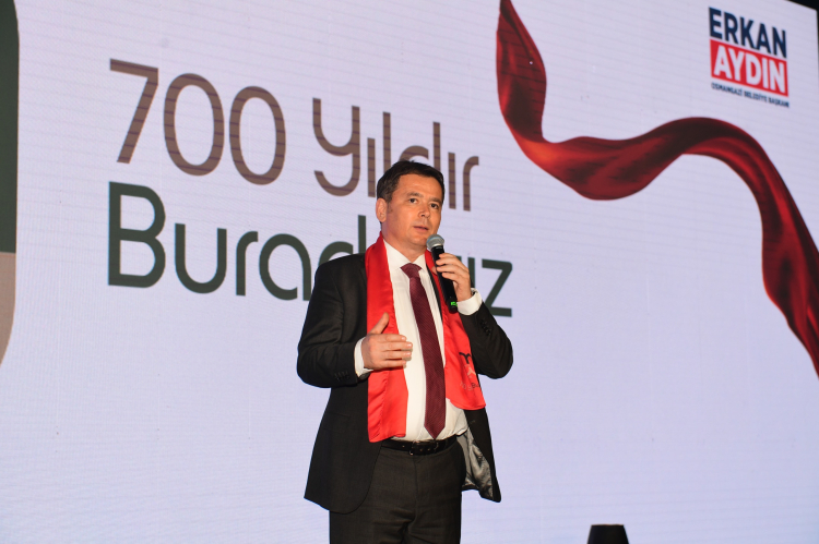Osman Gazi’yi Anma ve Bursa’nın Fethi Şenlikleri’ni bir yıl boyunca anma ve kutlama etkinlikleriyle değerlendireceklerinin altını çizen Başkan Erkan Aydın, “Balkanlar’dan Kafkasya’ya, Orta Asya’dan Uzak Doğu’ya, Avrupa’ya kadar uzanan kardeş şehirlerimizle yapılacak etkinliklerden; uluslararası tarihi kent koşusundan, kültürel ve sanatsal programlara kadar dolu dolu bir yıl yaşayacağız. Elbette bu büyük yılı bir simgeyle taçlandırmak istedik. Bu nedenle 700. yılın anısını taşıyacak özel bir logo çalışması yaptık. Bu çalışmayı da bir yarışma ile gerçekleştirdik. Halkımızın katılımıyla, her türlü fikrin özgürce ifade edildiği, katılımcı bir süreç yürüttük. Ortaya çıkan 700. yıl logosu, gerçekten hepimizin içine sinen, gurur duyduğumuz bir çalışma oldu. Uzun lafın kısası 700 yıldır buradayız. Allah’ın izniyle, daha nice 700 yıllar boyunca da bu topraklarda olmaya devam edeceğiz. Bugün ülkemizin etrafında oynanan oyunlara, emperyalizmin sinsi planlarına karşı; Anadolu’yu, Bursa’yı nasıl 700 yıl önce yurt edindiysek, Cumhuriyetimizin de ilelebet payidar kalacağına yürekten inanıyoruz. Büyük Önder Gazi Mustafa Kemal Atatürk’ün işaret ettiği yolda, birlik ve beraberlik içinde bu onuru yaşamaya devam edeceğiz” açıklamalarında bulundu.