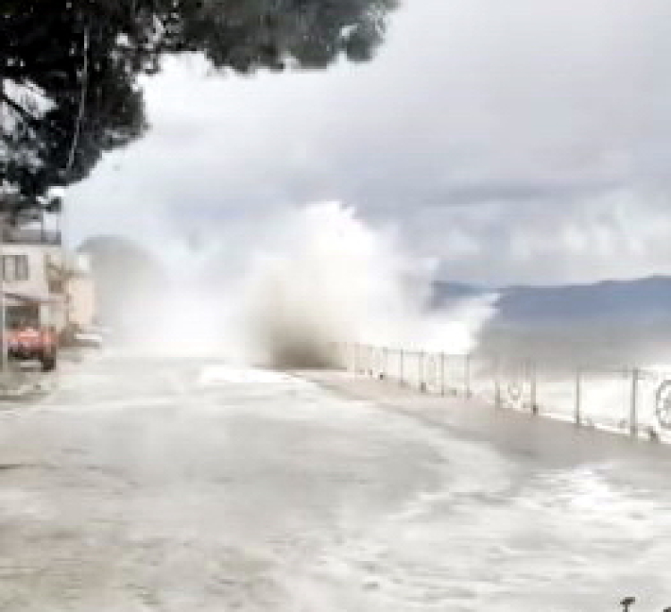 Gemlik ilçesinde öğle saatlerinde şiddetini arttıran fırtına sebebiyle ilçe merkezi, Narlı ve Kurşunlu mahallelerinde deniz kara ile birleşti
