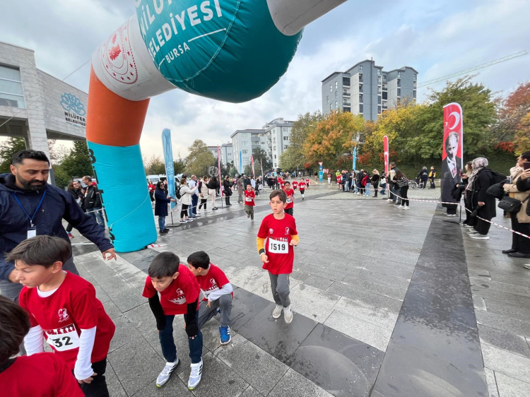 Emniyet ve Kanuni Caddelerini koşarak geçen çocuklar Nilüfer Belediyesi Halk Evi meydanındaki bitiş noktasına ulaştılar.