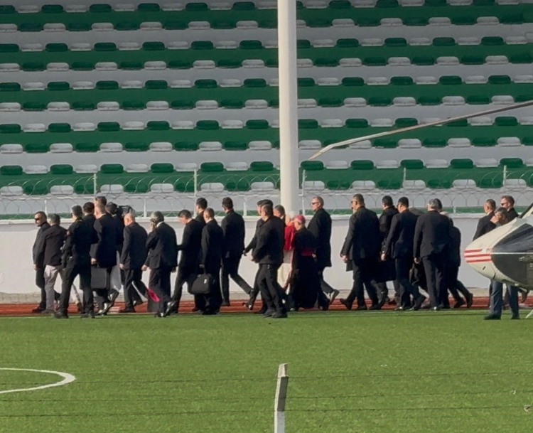 Papa’yı taşıyan helikopter ilçe stadyumuna indi.