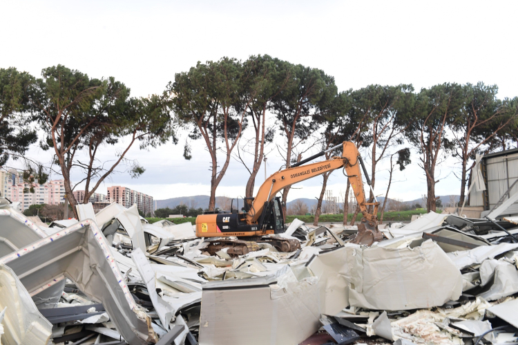 Yapılan incelemelerin ardından, kaçak olarak inşa edildiği tespit edilen bölgedeki depoların yıkım işlemleri ekipler tarafından program dahilinde yürütülüyor.