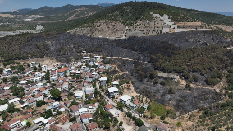 Yangının ardından havadan çekilen dron görüntüleri zümrüt yeşili orman manzarası olan mahallenin manzarasının adeta kömür karasına döndüğünü gözler önüne serdi.